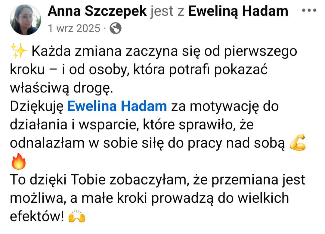 Nazywam się Ewelina Hadam. Od 10 lat pracuję z kobietami nad zmianą nawyków odżywiania. Jestem doradcą dietetycznym.